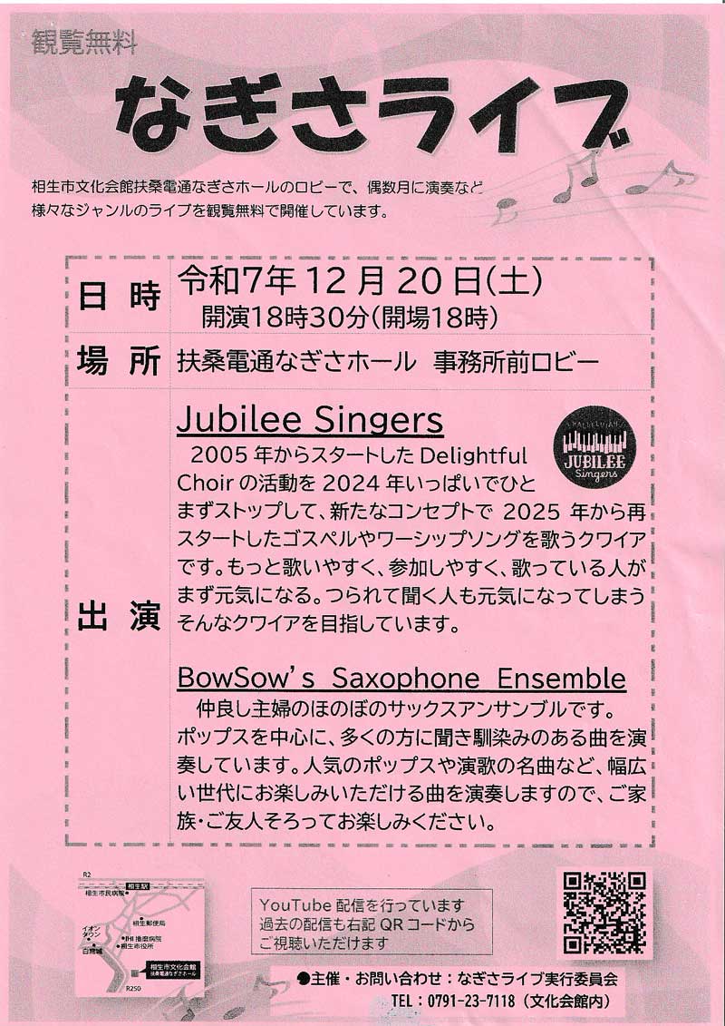 この番組は毎月1日ごろ、相生市内にお住いの皆様のところにお届けしている広報紙を相生らじおなりにわかりやすく音声でお届けしている番組です。